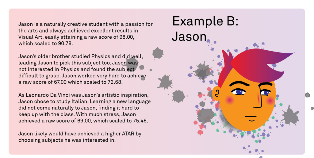 Here are two examples that highlight why you should choose subjects that feel RIGHT for you: